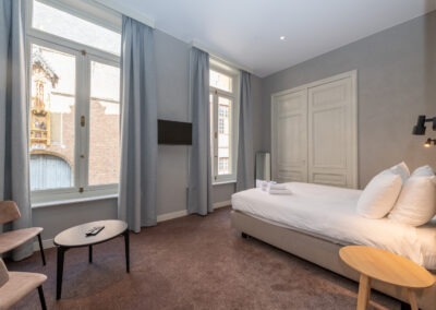 Welcome to Hotel Lucca, a charming 3-star retreat nestled in the heart of Bruges. Just a short stroll from the iconic Market Square, our hotel offers easy access to the city’s historic landmarks and vibrant culture. Our renovated rooms blend modern comfort with timeless elegance, each featuring flat-screen TVs, complimentary Wi-Fi, and private bathrooms. Begin your day with a delightful buffet served in our 14th-century vaulted cellar, adding a unique touch to your stay. We look forward to welcoming you to an unforgettable stay in Bruges. Book your room today and immerse yourself in the magic of our city.